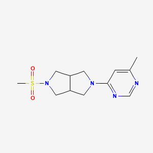The mechanism of action of 4-{5-Methanesulfonyl-octahydropyrrolo[3,4-c]pyrrol-2-yl}-6-methylpyrimidine involves its interaction with specific molecular targets. The methanesulfonyl group can act as an electrophile, facilitating reactions with nucleophilic sites on biological molecules. The pyrimidine ring can interact with enzymes or receptors, potentially modulating their activity. The exact pathways and targets depend on the specific application and the biological context .