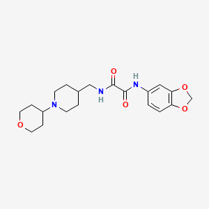 N-(2H-1,3-benzodioxol-5-yl)-N'-{[1-(oxan-4-yl)piperidin-4-yl]methyl}ethanediamide is a complex organic compound that has attracted attention in the fields of medicinal chemistry and pharmacology due to its unique structural features and potential biological activities. This article provides a comprehensive overview of its biological activity, including mechanisms of action, pharmacological effects, and relevant case studies.