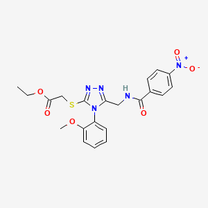 ethyl 2-((4-(2-methoxyphenyl)-5-((4-nitrobenzamido)methyl)-4H-1,2,4-triazol-3-yl)thio)acetate