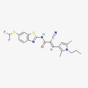 2-cyano-N-{6-[(difluoromethyl)sulfanyl]-1,3-benzothiazol-2-yl}-3-(2,5-dimethyl-1-propyl-1H-pyrrol-3-yl)prop-2-enamide is unique due to its combination of functional groups, which confer specific chemical and biological properties. The presence of both the benzothiazole and pyrrole rings, along with the difluoromethylthio and cyano groups, makes it a versatile compound for various applications.