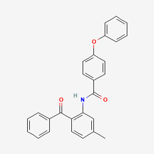 The synthesis of N-(2-benzoyl-5-methylphenyl)-4-phenoxybenzamide typically involves multiple steps, starting with the preparation of the intermediate compounds. One common method involves the acylation of 2-amino-5-methylbenzoic acid with benzoyl chloride to form N-(2-benzoyl-5-methylphenyl)benzamide. This intermediate is then reacted with 4-phenoxybenzoyl chloride under appropriate conditions to yield the final product. The reaction conditions often include the use of a base such as triethylamine and a solvent like dichloromethane .