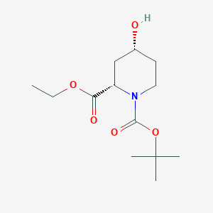 The mechanism of action of (2S,4R)-Ethyl 1-Boc-4-hydroxypiperidine-2-carboxylate depends on its specific application. In pharmaceutical synthesis, it acts as a precursor that undergoes various chemical transformations to yield active pharmaceutical ingredients. The molecular targets and pathways involved are specific to the final pharmaceutical product synthesized from this compound.