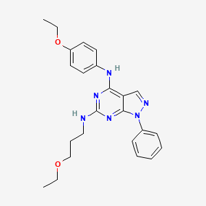 N4-(4-ethoxyphenyl)-N6-(3-ethoxypropyl)-1-phenyl-1H-pyrazolo[3,4-d]pyrimidine-4,6-diamine is a complex organic compound belonging to the pyrazolo[3,4-d]pyrimidine class. This compound has garnered attention due to its potential biological activities, particularly in cancer research. This article delves into the biological activity of this compound, summarizing its mechanisms of action, relevant studies, and potential therapeutic applications.
