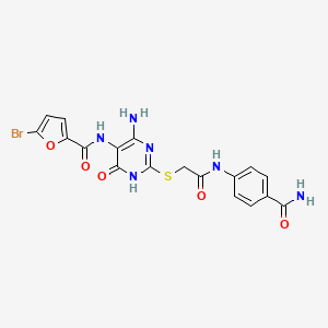 N-(4-amino-2-((2-((4-carbamoylphenyl)amino)-2-oxoethyl)thio)-6-oxo-1,6-dihydropyrimidin-5-yl)-5-bromofuran-2-carboxamide