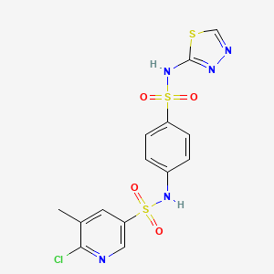 6-chloro-5-methyl-N-{4-[(1,3,4-thiadiazol-2-yl)sulfamoyl]phenyl}pyridine-3-sulfonamide is a complex organic compound that belongs to the class of sulfonamides. These compounds are known for their diverse applications in medicinal chemistry, particularly as antimicrobial agents. The presence of the thiadiazole ring and sulfonamide group in its structure suggests potential biological activity, making it a compound of interest in pharmaceutical research.