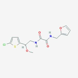 N-[2-(5-chlorothiophen-2-yl)-2-methoxyethyl]-N'-[(furan-2-yl)methyl]ethanediamide is a synthetic organic compound characterized by its unique structural features, including a thiophene ring, a furan ring, and an amide functional group. This compound has garnered attention in medicinal chemistry due to its potential biological activities, particularly in the fields of pharmacology and biochemistry.