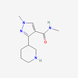 The mechanism of action of N,1-Dimethyl-3-piperidin-3-ylpyrazole-4-carboxamide involves its interaction with specific molecular targets. The compound may bind to enzymes or receptors, modulating their activity and leading to various biological effects. The exact pathways and targets depend on the specific application and context of use.