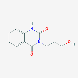 The mechanism of action of 3-(3-Hydroxypropyl)-1,2,3,4-tetrahydroquinazoline-2,4-dione involves its interaction with specific molecular targets, such as enzymes or receptors. The hydroxypropyl group may enhance its binding affinity and selectivity towards these targets. The compound may modulate various biochemical pathways, leading to its observed biological effects. Detailed studies on its molecular interactions and pathways are essential to fully understand its mechanism of action.