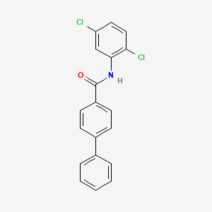 The synthesis of N-(2,5-dichlorophenyl)-[1,1’-biphenyl]-4-carboxamide typically involves the Suzuki–Miyaura coupling reaction. This reaction is a widely-used method for forming carbon-carbon bonds between aryl halides and boronic acids. The general procedure involves the reaction of 2,5-dichlorophenylboronic acid with 4-bromobiphenyl in the presence of a palladium catalyst and a base such as potassium carbonate. The reaction is carried out in a solvent like 1,4-dioxane or a mixture of dioxane and water under reflux conditions .