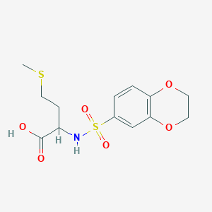 The mechanism of action of 2-(2,3-Dihydro-benzo[1,4]dioxine-6-sulfonylamino)-4-methylsulfanyl-butyric acid involves its interaction with specific molecular targets, such as enzymes or receptors. The sulfonylamino group can form strong interactions with active sites of enzymes, potentially inhibiting their activity. The benzo[1,4]dioxine ring may also interact with hydrophobic pockets within proteins, enhancing binding affinity and specificity.