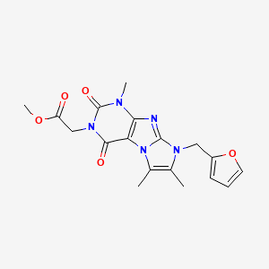 The synthesis of methyl 2-{8-[(furan-2-yl)methyl]-1,6,7-trimethyl-2,4-dioxo-1H,2H,3H,4H,8H-imidazo[1,2-g]purin-3-yl}acetate typically involves multi-step organic reactions. One common approach is to start with the preparation of the furan derivative, followed by its coupling with a purine derivative under controlled conditions. The reaction conditions often include the use of catalysts, solvents, and specific temperature and pressure settings to ensure high yield and purity.
