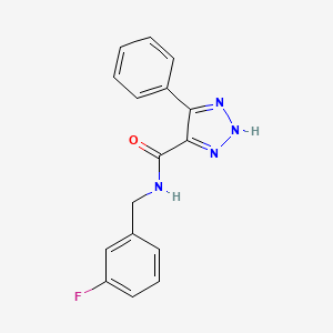 N-(3-fluorobenzyl)-4-phenyl-1H-1,2,3-triazole-5-carboxamide is unique due to the presence of the fluorine atom in the benzyl group. This fluorine atom can significantly influence the compound’s chemical properties, such as its reactivity and binding affinity to biological targets. The fluorine atom can also enhance the compound’s stability and bioavailability, making it a valuable candidate for further research and development.
