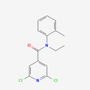 2,6-dichloro-N-ethyl-N-(2-methylphenyl)pyridine-4-carboxamide is an organic compound with a complex structure It is characterized by the presence of a pyridine ring substituted with chlorine atoms at the 2 and 6 positions, an ethyl group, and a 2-methylphenyl group
