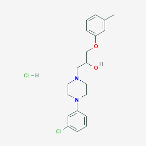 The mechanism of action of 1-(4-(3-Chlorophenyl)piperazin-1-yl)-3-(m-tolyloxy)propan-2-ol hydrochloride involves its interaction with specific molecular targets, such as receptors or enzymes. The compound may modulate the activity of these targets, leading to various biological effects. The exact pathways and targets can vary depending on the specific application and context of use.