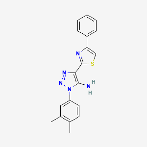 The synthesis of 1-(3,4-dimethylphenyl)-4-(4-phenyl-1,3-thiazol-2-yl)-1H-1,2,3-triazol-5-amine typically involves a multi-step process. One common method is the cycloaddition reaction between an azide and an alkyne to form the triazole ring, followed by the introduction of the thiazole and phenyl groups. The reaction conditions often require the use of catalysts such as copper(I) iodide and solvents like dimethyl sulfoxide (DMSO) to facilitate the reaction.