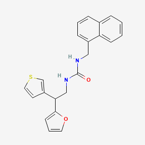The synthesis of 3-[2-(Furan-2-yl)-2-(thiophen-3-yl)ethyl]-1-[(naphthalen-1-yl)methyl]urea typically involves multi-step organic reactions. One common approach is to start with the preparation of the intermediate compounds, such as furan-2-yl and thiophen-3-yl derivatives, followed by their coupling with a naphthalen-1-ylmethyl isocyanate.