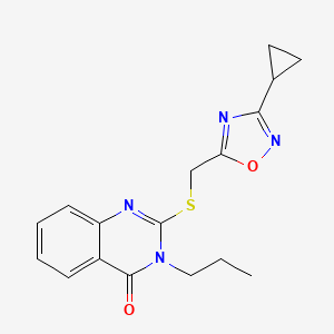 The compound 2-(((3-cyclopropyl-1,2,4-oxadiazol-5-yl)methyl)thio)-3-propylquinazolin-4(3H)-one is a novel heterocyclic derivative that has garnered attention due to its potential biological activities. This article aims to explore its synthesis, biological properties, and the underlying mechanisms responsible for its activity.