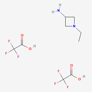 The mechanism of action of 1-Ethylazetidin-3-amine;2,2,2-trifluoroacetic acid involves its interaction with molecular targets such as enzymes and receptors. The azetidine ring can mimic the structure of natural substrates, allowing the compound to bind to active sites of enzymes or receptors. The trifluoroacetate group enhances the compound’s reactivity and binding affinity through its electronegative nature .