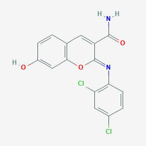 (2Z)-2-[(2,4-dichlorophenyl)imino]-7-hydroxy-2H-chromene-3-carboxamide is a synthetic organic compound that belongs to the class of chromene derivatives. Chromenes are known for their diverse biological activities and are widely studied for their potential therapeutic applications.