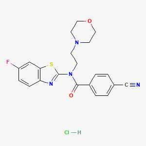 The synthesis of 4-cyano-N-(6-fluorobenzo[d]thiazol-2-yl)-N-(2-morpholinoethyl)benzamide hydrochloride typically involves multi-step organic reactions. The general synthetic route includes: