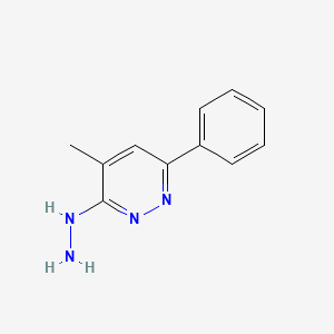 The most straightforward disconnection involves the carbon-nitrogen bond of the hydrazinyl group. This leads to a key precursor, 3-chloro-4-methyl-6-phenylpyridazine (B1595225), and a simple nucleophile, hydrazine (B178648). The chloro-substituted pyridazine (B1198779) is an ideal substrate for a nucleophilic aromatic substitution (SNAr) reaction, as the chlorine atom is activated by the electron-withdrawing nitrogen atoms in the pyridazine ring.