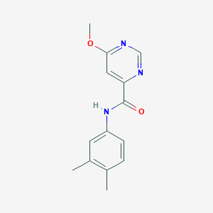 The synthesis of N-(3,4-dimethylphenyl)-6-methoxypyrimidine-4-carboxamide typically involves the reaction of 3,4-dimethylaniline with 6-methoxypyrimidine-4-carboxylic acid. The reaction is carried out in the presence of a coupling agent such as EDCI (1-ethyl-3-(3-dimethylaminopropyl)carbodiimide) and a base like triethylamine. The reaction mixture is stirred at room temperature for several hours to yield the desired product.