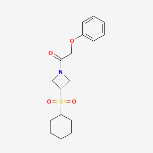 The mechanism of action of 1-(3-(Cyclohexylsulfonyl)azetidin-1-yl)-2-phenoxyethanone involves its interaction with specific molecular targets and pathways. The azetidine ring and sulfonyl group are key functional groups that interact with biological molecules, potentially inhibiting enzymes or disrupting cellular processes. The exact molecular targets and pathways are subject to ongoing research.