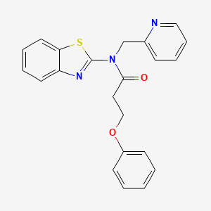 The mechanism of action of N-(benzo[d]thiazol-2-yl)-3-phenoxy-N-(pyridin-2-ylmethyl)propanamide involves its interaction with specific molecular targets. In anti-inflammatory applications, it inhibits cyclooxygenase enzymes (COX-1 and COX-2), reducing the production of pro-inflammatory mediators . In antimicrobial applications, it disrupts bacterial cell wall synthesis or interferes with essential bacterial enzymes .