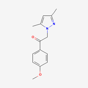 2-(3,5-Dimethylpyrazol-1-yl)-1-(4-methoxyphenyl)ethanone is a pyrazole derivative that has garnered interest in medicinal chemistry due to its potential biological activities. This compound features a pyrazole ring substituted with methyl groups and a methoxy-substituted phenyl group, which may influence its pharmacological properties. This article reviews the biological activity of this compound, focusing on its mechanisms of action, therapeutic potentials, and relevant research findings.