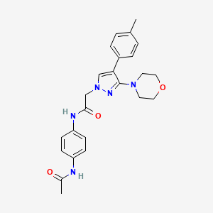 The mechanism of action of N-(4-acetamidophenyl)-2-(3-morpholino-4-(p-tolyl)-1H-pyrazol-1-yl)acetamide involves its interaction with specific molecular targets and pathways. The compound may exert its effects by binding to enzymes, receptors, or other proteins, thereby modulating their activity. The exact molecular targets and pathways involved depend on the specific biological or chemical context in which the compound is used.