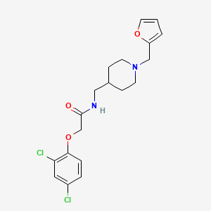 The compound 2-(2,4-dichlorophenoxy)-N-((1-(furan-2-ylmethyl)piperidin-4-yl)methyl)acetamide is a synthetic organic molecule that has garnered attention in pharmaceutical research for its potential biological activities. This article reviews the biological activity of this compound, focusing on its mechanisms of action, therapeutic applications, and relevant case studies.