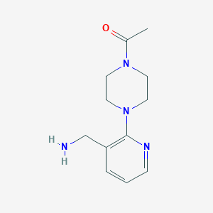 The mechanism of action of 1-(4-[3-(Aminomethyl)pyridin-2-yl]piperazin-1-yl)ethan-1-one involves its interaction with specific molecular targets and pathways. The compound can bind to enzymes and receptors, modulating their activity and leading to various biological effects. The aminomethyl group plays a crucial role in its binding affinity and specificity, allowing it to interact with active sites of enzymes and receptors.