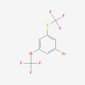 1-Bromo-3-(trifluoromethoxy)-5-(trifluoromethylsulfanyl)benzene can be synthesized through several methods. One common approach involves the bromination of 3-(trifluoromethoxy)-5-(trifluoromethylsulfanyl)benzene. This reaction typically uses bromine or N-bromosuccinimide (NBS) as the brominating agent in the presence of a catalyst such as iron or aluminum chloride. The reaction is usually carried out in an inert solvent like dichloromethane or chloroform at low temperatures to control the reactivity and ensure selective bromination.