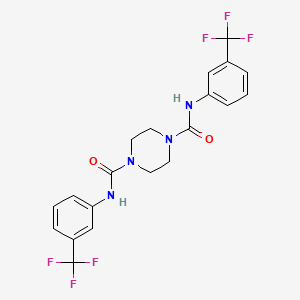 The mechanism of action of N1,N4-bis[3-(trifluoromethyl)phenyl]piperazine-1,4-dicarboxamide involves its interaction with specific molecular targets and pathways. The compound can bind to certain receptors or enzymes, modulating their activity and leading to various biological effects. The exact molecular targets and pathways involved depend on the specific application and context of its use.