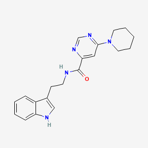 This compound is a pyrimidine-4-carboxamide derivative featuring a piperidine substituent at the 6-position and a 2-(1H-indol-3-yl)ethyl group attached to the carboxamide nitrogen.