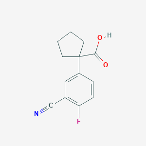The mechanism of action of 1-(3-Cyano-4-fluorophenyl)cyclopentane-1-carboxylic acid involves its interaction with specific molecular targets and pathways. The cyano group and fluorine atom play crucial roles in its binding affinity and selectivity towards target proteins. The compound can inhibit or activate specific enzymes, leading to various biological effects. Detailed studies are required to elucidate the exact molecular targets and pathways involved .
