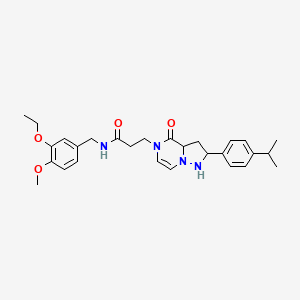 | IUPAC Name | N-[(3-ethoxy-4-methoxyphenyl)methyl]-3-[4-oxo-2-(4-propan-2-ylphenyl)pyrazolo[1,5-a]pyrazin-5-yl]propanamide |