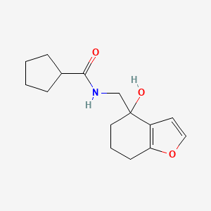 N-((4-hydroxy-4,5,6,7-tetrahydrobenzofuran-4-yl)methyl)cyclopentanecarboxamide is a complex organic compound that has garnered attention for its potential biological activities. The unique structural characteristics of this compound, particularly the presence of a tetrahydrobenzofuran moiety and a cyclopentanecarboxamide group, suggest various therapeutic applications. This article reviews the biological activity of this compound, focusing on its mechanisms of action, potential therapeutic effects, and relevant case studies.