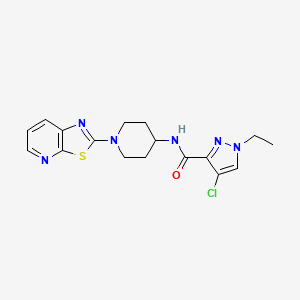 4-Chloro-1-ethyl-N-(1-(thiazolo[5,4-b]pyridin-2-yl)piperidin-4-yl)-1H-pyrazole-3-carboxamide is a synthetic compound that has garnered attention in medicinal chemistry due to its complex structure and potential biological activities. This compound incorporates various heterocyclic moieties, namely thiazole, pyridine, and pyrazole, which are known for their diverse pharmacological properties. Understanding the biological activity of this compound is crucial for its potential therapeutic applications.