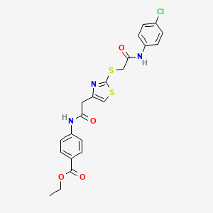 Ethyl 4-(2-(2-((2-((4-chlorophenyl)amino)-2-oxoethyl)thio)thiazol-4-yl)acetamido)benzoate