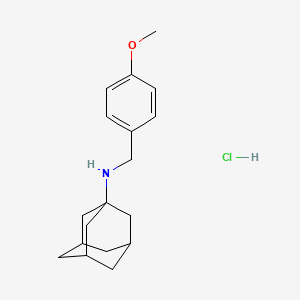 The mechanism of action of N-[(4-methoxyphenyl)methyl]adamantan-1-amine hydrochloride would depend on its specific application. In medicinal chemistry, it might interact with molecular targets such as enzymes or receptors, modulating their activity. The adamantane core could facilitate binding to hydrophobic pockets, while the benzyl and amine groups could participate in hydrogen bonding or ionic interactions.