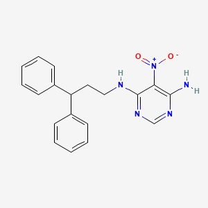 The synthesis of N4-(3,3-diphenylpropyl)-5-nitropyrimidine-4,6-diamine typically involves multiple steps. One common synthetic route starts with the preparation of 3,3-diphenylpropylamine, which is then reacted with a pyrimidine derivative. The key steps include: