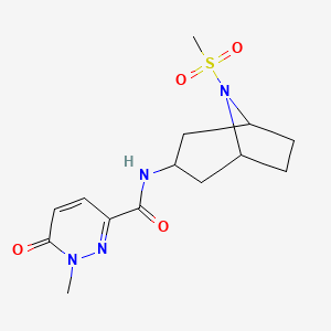 1-methyl-N-(8-(methylsulfonyl)-8-azabicyclo[3.2.1]octan-3-yl)-6-oxo-1,6-dihydropyridazine-3-carboxamide is a complex organic compound with significant potential in medicinal chemistry. Its unique structural features, including a bicyclic framework and various functional groups, suggest diverse biological activities, particularly in pharmacological applications.