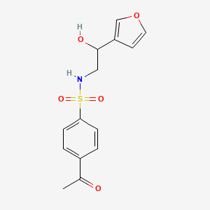 The synthesis of 4-acetyl-N-(2-(furan-3-yl)-2-hydroxyethyl)benzenesulfonamide typically involves multi-step organic reactions. One common approach is the reaction of 4-acetylbenzenesulfonyl chloride with 2-(furan-3-yl)-2-hydroxyethylamine under basic conditions. The reaction is usually carried out in an organic solvent such as dichloromethane or tetrahydrofuran, with a base like triethylamine to neutralize the hydrochloric acid formed during the reaction.