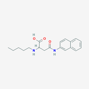 The synthesis of 4-(Naphthalen-2-ylamino)-4-oxo-2-(pentylamino)butanoic acid typically involves multi-step organic reactions. One common method includes the catalytic acylation using 4-dimethylaminopyridine between succinic anhydride and (1-{6-[(2-hydroxyethyl)(methyl)amino]-2-naphthyl}ethylidene)malononitrile . The reaction conditions often require controlled temperatures and specific solvents to ensure the desired product yield.
