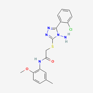 The synthesis of 2-{[4-amino-5-(2-chlorophenyl)-4H-1,2,4-triazol-3-yl]sulfanyl}-N-(2-methoxy-5-methylphenyl)acetamide typically involves multiple steps, starting with the preparation of the triazole ring. The triazole ring can be synthesized through a cyclization reaction involving hydrazine derivatives and appropriate aldehydes or ketones. The introduction of the sulfanyl group is achieved through nucleophilic substitution reactions, where a thiol group is introduced to the triazole ring. The final step involves the acylation of the triazole derivative with 2-methoxy-5-methylphenyl acetic acid under suitable conditions, such as the presence of a coupling agent like EDCI (1-ethyl-3-(3-dimethylaminopropyl)carbodiimide) and a base like triethylamine.