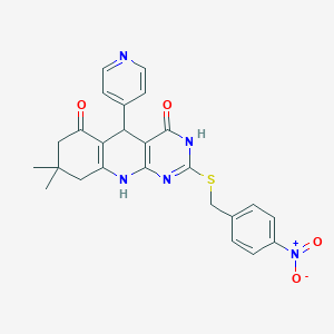 8,8-dimethyl-2-((4-nitrobenzyl)thio)-5-(pyridin-4-yl)-7,8,9,10-tetrahydropyrimido[4,5-b]quinoline-4,6(3H,5H)-dione