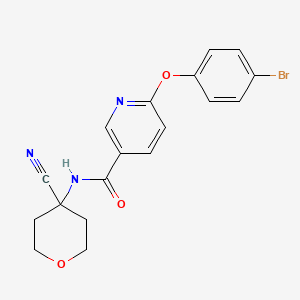 6-(4-bromophenoxy)-N-(4-cyanooxan-4-yl)pyridine-3-carboxamide is a synthetic organic compound characterized by its complex structure, which includes a bromophenoxy group, a cyanooxan group, and a pyridine carboxamide moiety. This compound is of interest in various fields of scientific research due to its potential biological activities and applications in medicinal chemistry.