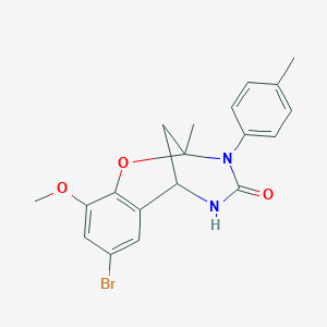 8-Bromo-10-methoxy-2-methyl-3-(p-tolyl)-5,6-dihydro-2H-2,6-methanobenzo[g][1,3,5]oxadiazocin-4(3H)-one (CAS Number: 899356-59-3) is a synthetic compound that has garnered attention in medicinal chemistry due to its potential biological activities. This article aims to provide a detailed overview of its biological activity, including mechanisms of action, case studies, and relevant research findings.