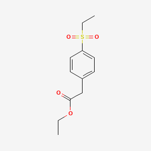 The synthesis of this compound typically involves the esterification of 2-(4-(ethylsulfonyl)phenyl)acetic acid with ethanol, using a strong acid catalyst like sulfuric acid under reflux conditions to ensure complete conversion. In industrial settings, continuous flow processes may enhance efficiency and yield, allowing for precise control over reaction parameters.
